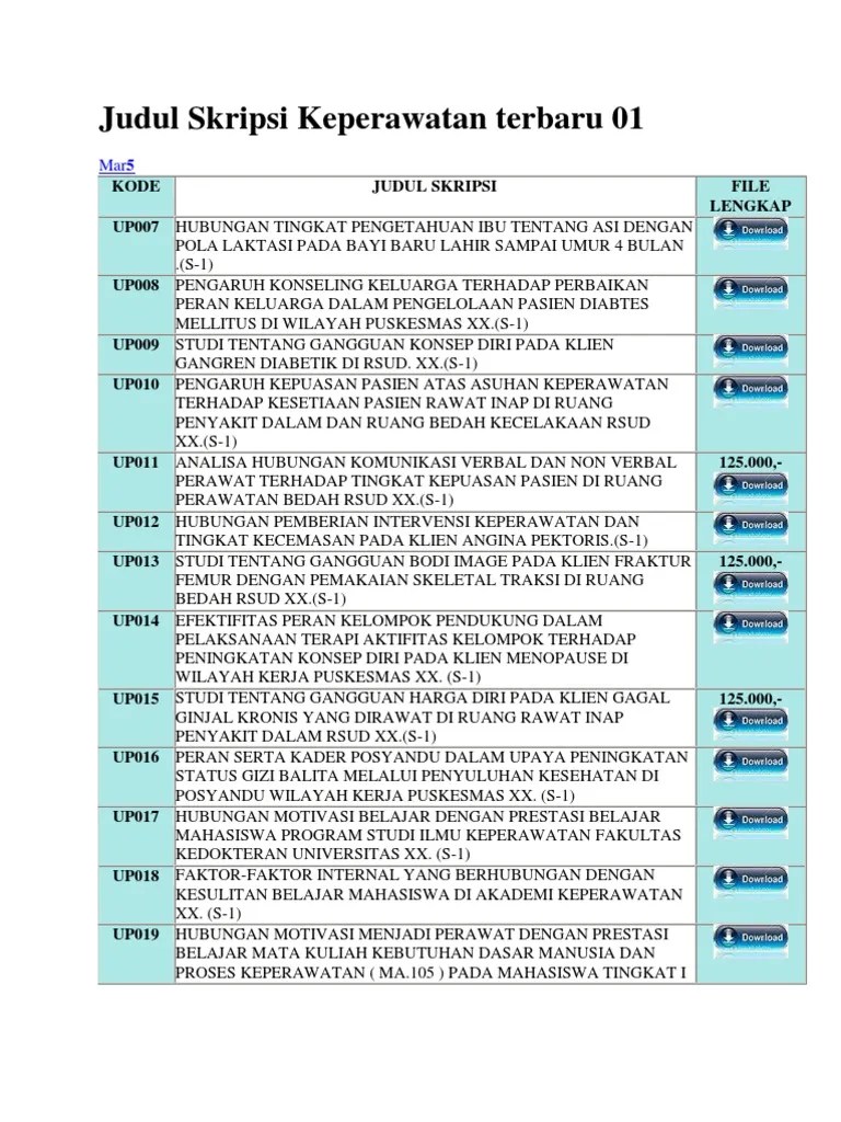 Kumpulan judul proposal karya tulis ilmiah (kti) keperawatan :. judul skripsi keperawatan komunitas lengkap dengan filenya tahun terbaru kumpulan skripsi komunitas. Selanjutnya pada tahun 2002 memperoleh strata akreditasi a, pada tahun 2007 mendapatkan. Ada banyak judul skripsi yang bisa teman teman pilih gratis dan gunakan sebagai bahan judul skripsi. Kualitas hidup, obesitas, usia sekolah.