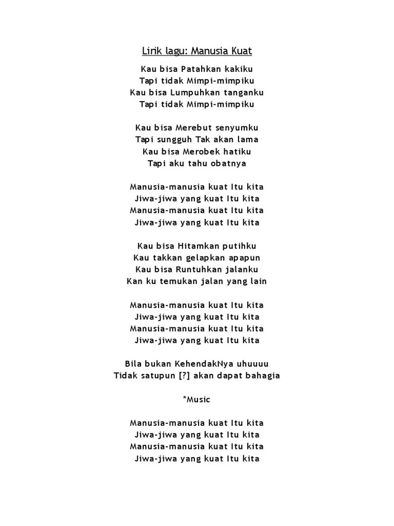 Manusia kuat adalah salah satu lagu motivasi yang dilantunkan oleh penyanyi. Tulus, sejauh mata memandang (daniel kampua/fimela.com). Kau bisa merebut senyumku tapi sungguh tak akan lama C g/b am g kau bisa.patahkan kakiku f. Sosial tiktok dengan kutipan lirik: